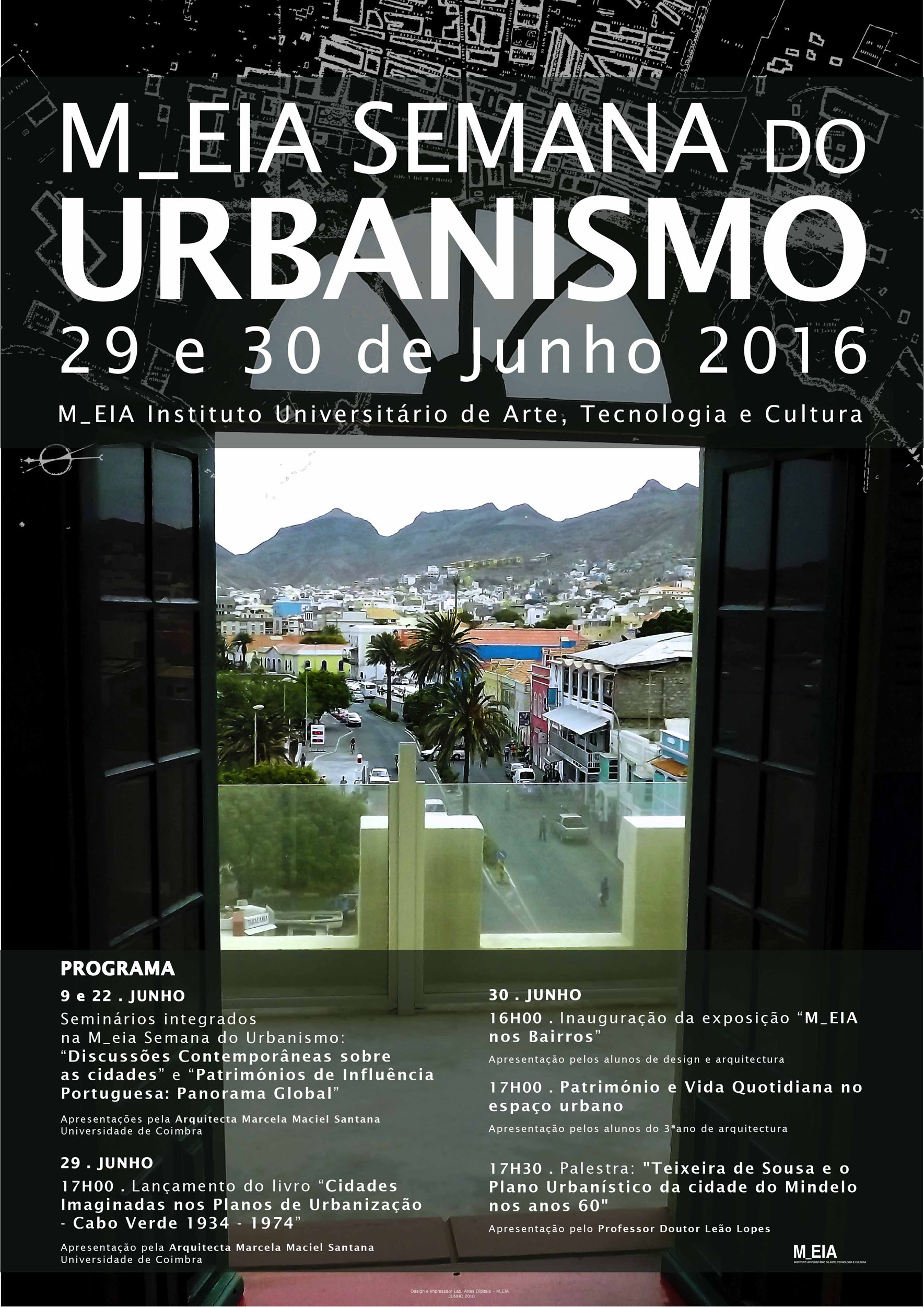 Esta M_EIA Semana do Urbanismo_2016 dá ainda visibilidade aos trabalhos realizados pelos estudantes nos bairros informais da cidade do Mindelo durante o ano lectivo 2015/2016, e traz para a discussão, no plano académico, outras questões urbanísticas de interesse para a compreensão das políticas de desenvolvimento das nossas cidades.